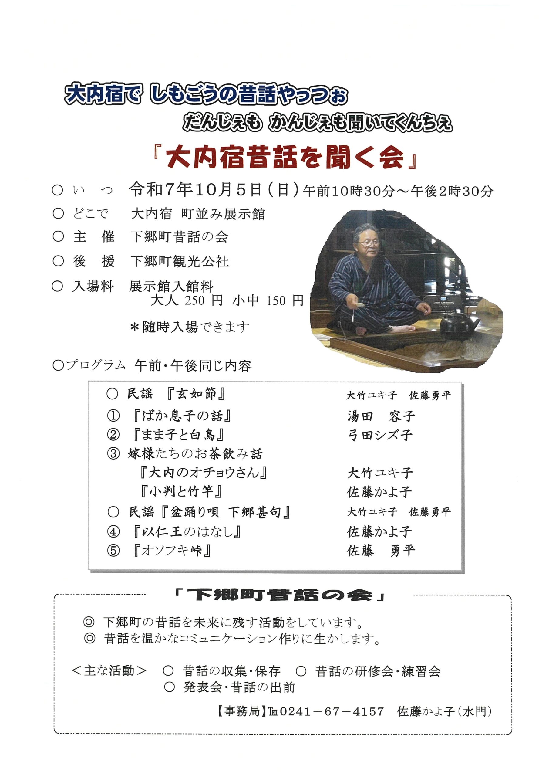 10/5(日)大内宿町並み展示館にて昔話を聞く会が開催されます。